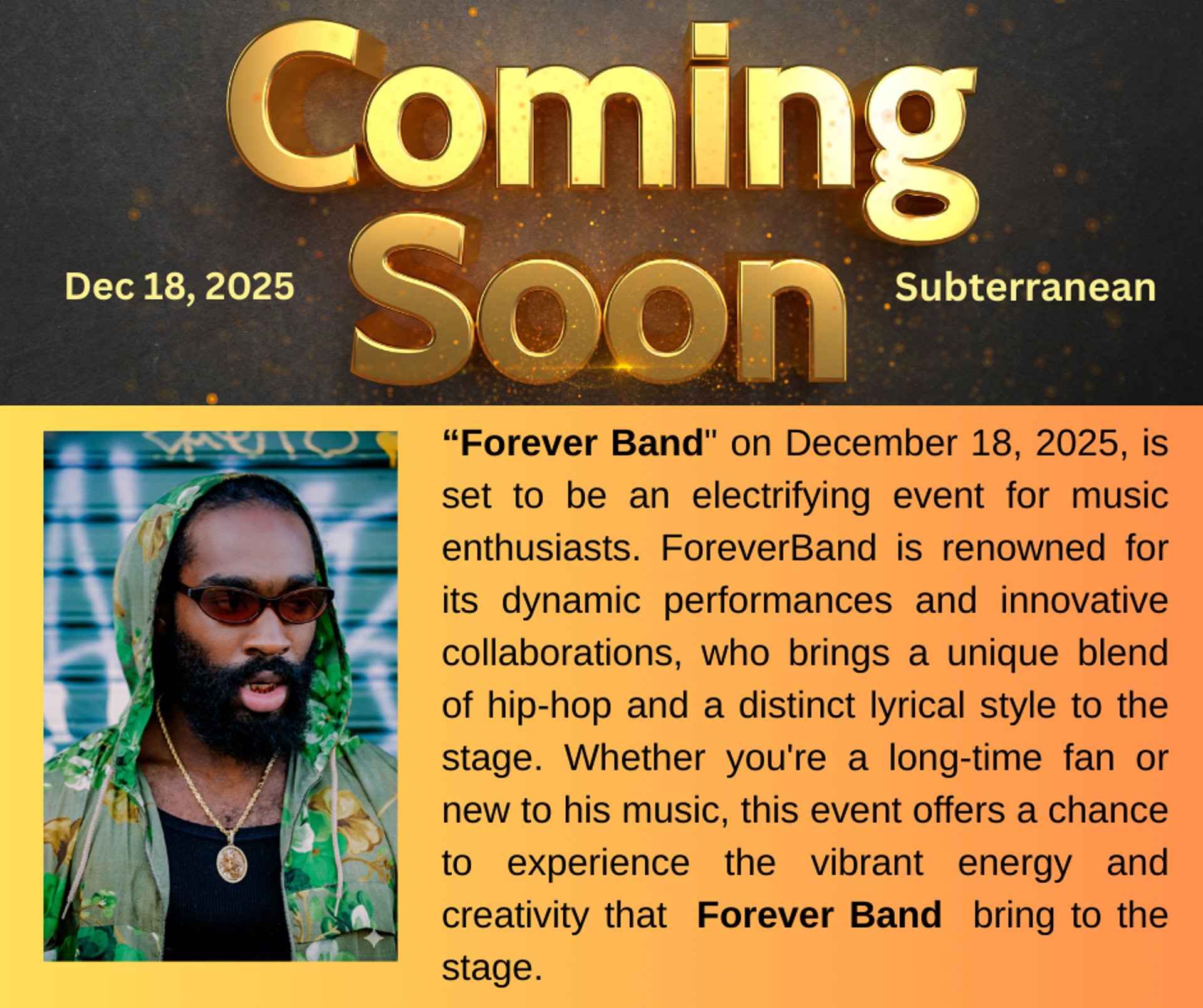 Foreverband show at Subterranean, Chicago, IL. Doors open at 7p. Tickets on sale now.